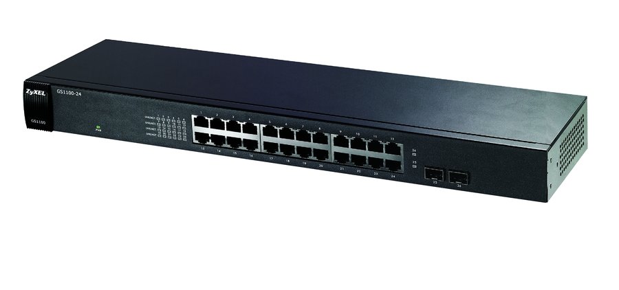 Коммутатор Zyxel GS1100-24, 24xGE, 2xSFP, rack 19", бесшумный