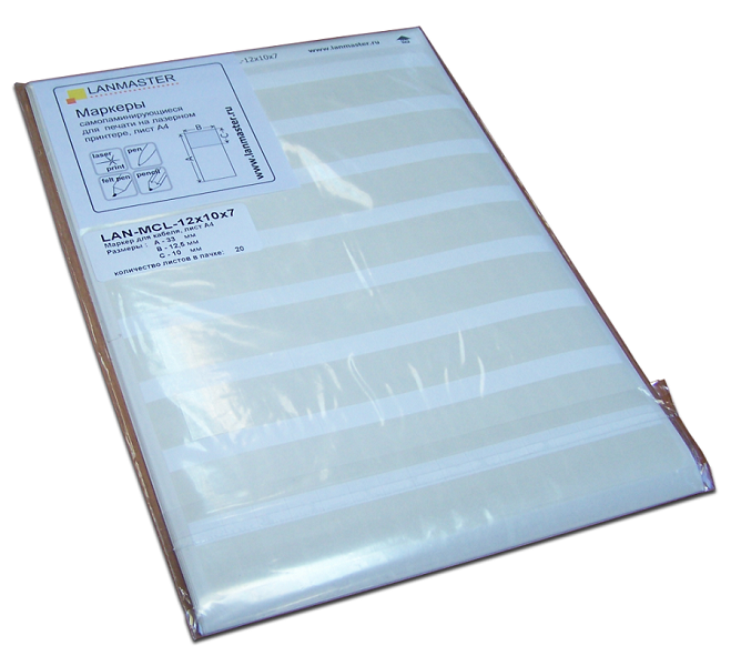 Маркеры приклеены на лист-подложку формата А4. Это удобное и экономичное решение для маркировки и идентификации кабелей, проводов и не только. Самоламинирование обеспечивает превосходную защиту печатной области маркера от истирания, а также от воды, химикатов, растворителей, масел и других загрязнителей. Применимы для приклеивания на бумагу, пленку, виниловые и резиновые оболочки кабелей, стекло, пластиковые трубы и пр. В качестве основы для самоламинирующегося маркера используется пленка из полиэстера с постоянным адгезивом и белым полем для надписи. Поставляется в виде пачки по 20 листов в каждой.