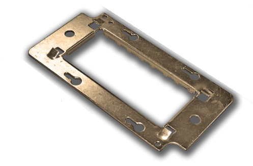Металлический суппорт для установки 45х90. Металлические суппорта для электроустановочных изделий серии Mosaic, а также слаботочных розеток того же стандарта. Предназначены для установки на внутренние и внешние коробки серии Mosaic с накладками соответствующего размера. Материал сталь.