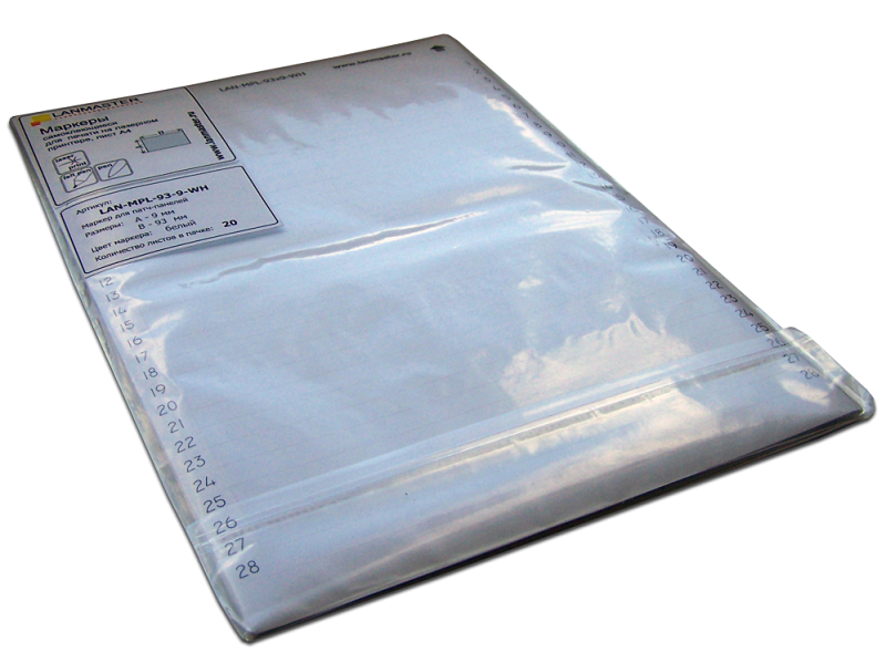 Маркер самоклеющийся, л.А4, 93х9, для патч-панелей, белый, 56 шт/л.. Маркеры приклеены на лист-подложку формата А4. Это удобное и экономичное решение для маркировки и идентификации лицевых вставок телекоммуникационных розеток, электрических розеток, а также любых плоских поверхностей. Для удобства повторной печати на неиспользованных маркерах листы имеют нумерацию строк. Ламинирование данных маркеров после нанесения идентификаторов существенно продлевает срок их службы и резко увеличивает стойкость к истиранию. Применимы для приклеивания на бумагу, дерево, пленку, виниловые и резиновые оболочки кабелей, стекло, пластиковые трубы и пр. В качестве основы для самоламинирующегося маркера используется синтетическая бумага с постоянным адгезивом. Поставляется в виде пачки по 20 листов в каждой.