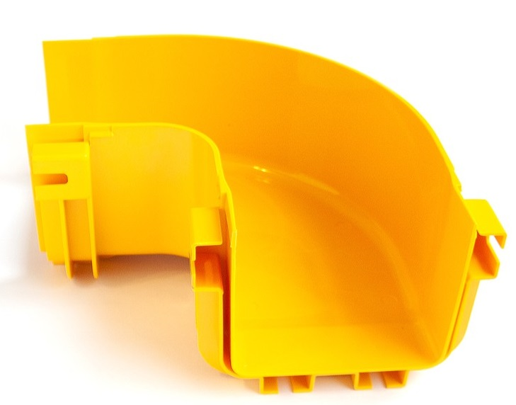 Горизонтальный поворот 90° оптического лотка 120 мм, монтаж без соединителей, желтый