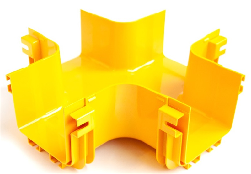 Х-соединитель оптического лотка 120 мм, монтаж без соединителей, желтый