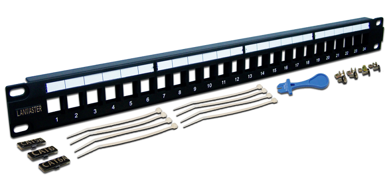 Патч-панель наборная 19", неэкранированная, 24 порта, 1U. Имея 24 порта при высоте 1U, панели обеспечивают высокую плотность монтажа сетевых соединений. С лицевой стороны порты панели имеют цифровую маркировку.