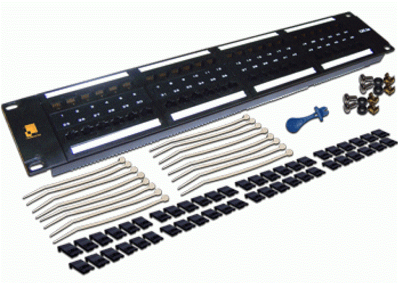 Патч-панель LANMASTER 48 портов, UTP, кат.6, 2U. Соответствует требованиям категории 6. Панель может монтироваться в 19-дюймовую стойку, шкаф или настенную раму, а также на стену (с помощью дополнительных кронштейнов). Для подключения абонентских кабелей используется метод врезного контакта сквозь изоляцию - IDC. IDC разъемы панели являются универсальными и допускают монтаж кабеля с использованием как инструментов для 110-х контактов, так и инструментов для контактов типа Krone. На передней стороне панели смонтированы стандартные порты типа RJ-45, объединенные в группы по 6 портов.