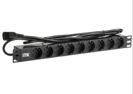 Панель питания распределительная ITK PDU 9 розеток нем. ст, 1U, шнур 2м вилка С14 ал.проф. 9 розеток, алюминиевый профиль