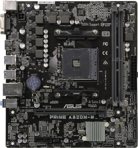 ASUS PRIME A320M-R-SI, Socket AM4, A320, 2*DDR4, D-Sub + HDMI, SATA3 + RAID, Audio, Gb LAN, USB 3.1*6, USB 2.0*6, mATX ; 90MB0XD0-M0ECY0