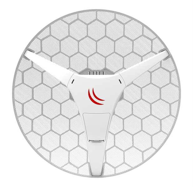 MikroTik LHG 5 ac with 24.5dBi 5GHz antenna, Dual Chain 802.11ac wireless, 716MHz CPU, 256MB RAM, 1x Gigabit LAN, POE, PSU, RouterOS L3