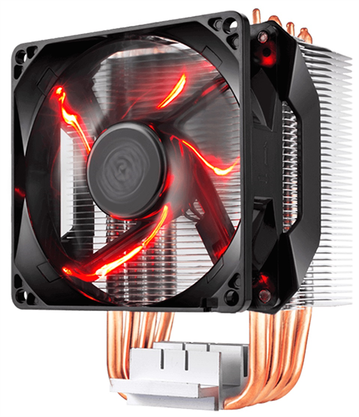 Кулер для процессора Cooler Master Hyper H410R, 600-2000 RPM, 100W, 4-pin, Red LED fan, Full Socket Support. 4 тепловые трубки, скорость вентилятора: 600-2000 об/мин