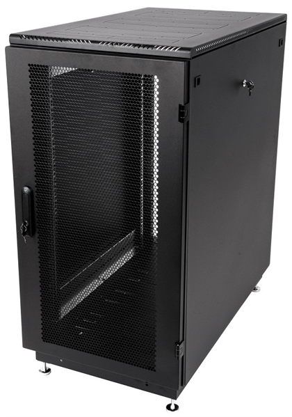 Шкаф телекоммуникационный напольный 22U (600 ? 1000) дверь перфорированная 2 шт., цвет черный.