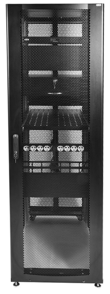 Шкаф серверный ПРОФ напольный 42U (800x1200) дверь перфор. 2 шт., черный, в сборе. Угол открытия дверей: 120 градусов
