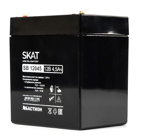 (2531) Бастион SKAT SB 12045 АКБ СК 12В/4,5Ач/макс. ток заряд 1,35А/F1/Срок службы 6 лет/1,5 л.г