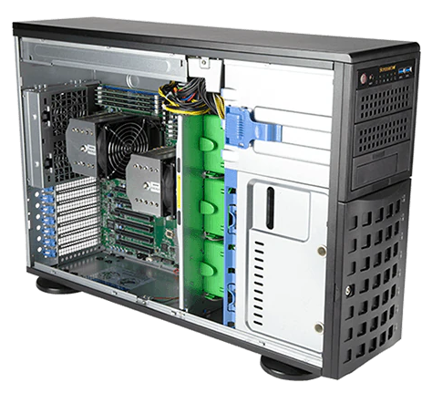 Шасси серверное Supermicro Super Workstation 4U Tower 740A-T no CPU(2)Scalable/TDP 270W/ no DIMM(16)/SATARAID HDD(8)LFF/3x5,25/2x1GbE/6xFHHL,M2/1200W. Слоты расширения: 5xPCI-E 4.0 x16, 1xPCI-E 4.0 x8, 2xNVMe M.2
