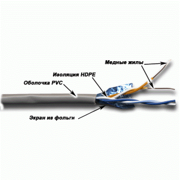 Кабель TWT FTP, 2 пары, Кат.5е, PVC, 305 метров, серый. Каждый проводник заключен в изоляцию HDPE (полиэтилен высокой плотности). Два проводника, скрученных со специально подобранным шагом, составляют одну витую пару. Кабель имеет под внешней оболочкой общий экран в виде ламинированной алюминиевой фольги.