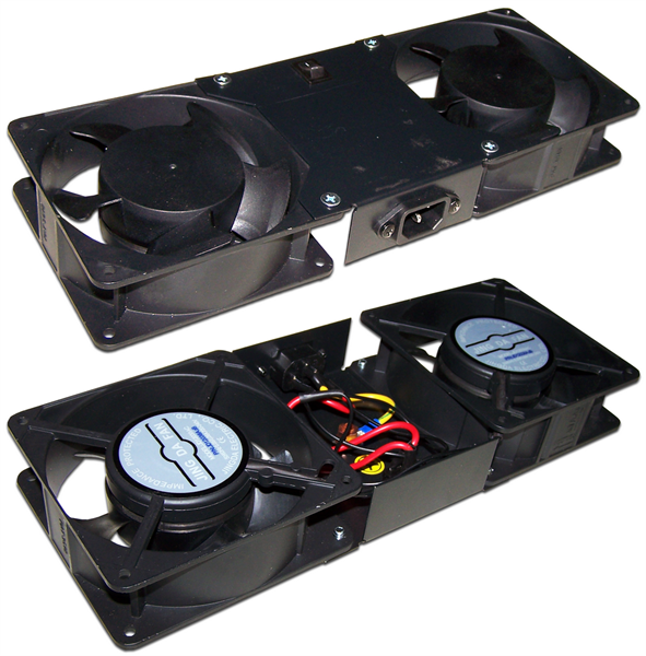 Блок 2-х вентиляторов в крышу настенного шкафа Pro. Тип используемых вентиляторов – на основе подшипников.