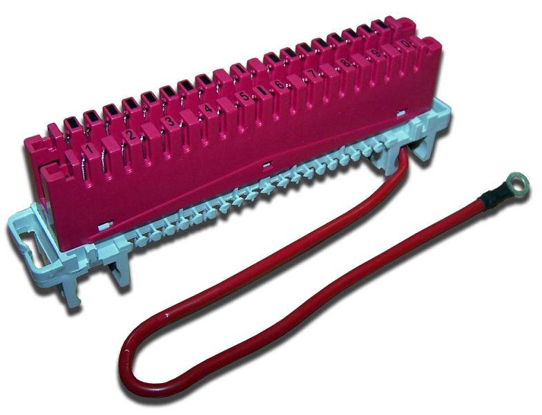 Плинт заземления LSA Profil, 10 пар, маркировка от 1 до 0. Имеется возможность для подключения до 38 экранных проволок. Кроссировочная сторона плинта имеет цифровую маркировку от 1 до 0. Материал плинтов - высококачественный, негорючий, не дымный пластик ABS. Цвет корпуса: красный.