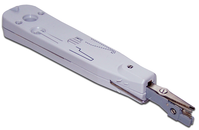 Ударный инструмент для разделки контактов LSA, укороченный. Ударный механизм инструмента снабжен регулируемым механизмом силы нажатия, что позволяет плавно изменять усилие нажатия до требуемого. Нож инструмента снабжен ножницами для отрезания излишка кабеля при заделке контакта, в рукоятке ножа имеются специальный крючок для извлечения кабеля из разъема и плоский стек для продавливания проводников.