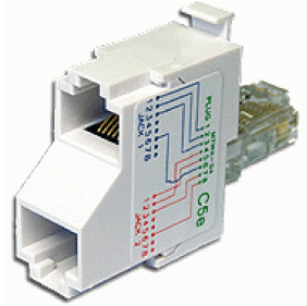 T-адаптер, 2 компьютерных порта. Преобразует один 4-парный порт RJ-45 на входе в два 2-парных порта для приложений 10/100 BASE-T. Схема разводки проводников размещена на боковой поверхности корпуса. T-адаптеры удобны для разделения портов на патч-панелях. Соответствует требованиям категории 5е.