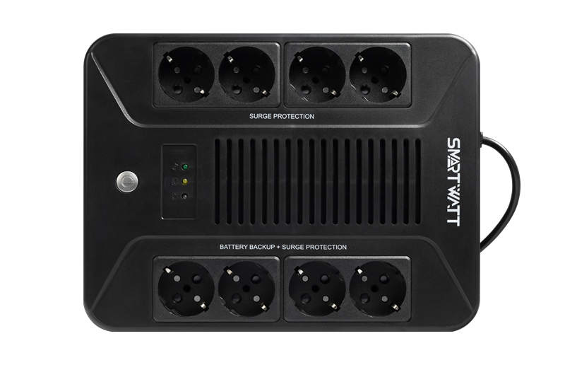 Источник бесперебойного питания SMARTWATT линейно-интерактивный, 800/480 ВА/Вт, напольный/настенный, LED индикация, Shuko CEE7/4 - 8 шт. (4 шт. с резервным питанием, 4 шт. - сетевой фильтр)
