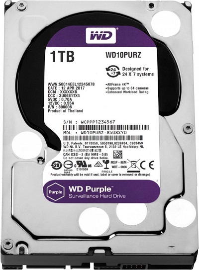 Western Digital HDD SATA-III 1000Gb Purple WD10PURZ, IntelliPower, 64MB buffer (DV&NVR)