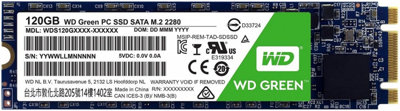 Western Digital SSD Green 120Gb SATA-III M.2 2280 3D NAND WDS120G2G0B