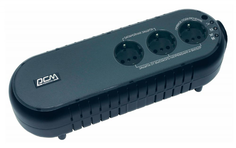 Источник бесперебойного питания Powercom Back-UPS WOW, OffLine, 500VA/250W, Tower, 3 Schuko outlets(1 Surge & 2 batt), USB (37371). Выходные разъемы: 3хEURO: 2 с резервным питанием, 1 с фильтрацией; Защита ИБП от перегрузок: Автоматическое отключение ИБП, если перегрузка в резервном режиме превышает 105% от номинала за 20 секунд, 120% за 10 секунд, 130% за 3 секунды; Тип батареи: С горячей заменой, герметичный необслуживаемый свинцово-кислотный, срок службы 3-5 лет; Напряжение и емкость батареи: 12В / 3,2Ач; Время батарейной поддержки (ПК с 15" монитором, нагрузка 100Вт): 7 минут. Комплектация: ИБП, Входной шнур питания 1,2 метра (встроен в корпус), Соединительный телефонный кабель RJ-11, Коммуникационный кабель USB, CD-ROM диск с программным обеспечением, Гарантийный талон, Инструкция по эксплуатации