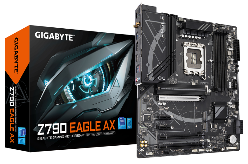 GIGABYTE Z790 EAGLE AX, LGA1700, Z790, 4*DDR5,HDMI+ DP, 4 SATA 6 Гб/с, M2, Audio, Gb LAN, USB 3.2, USB 2.0, Type-C, ATX