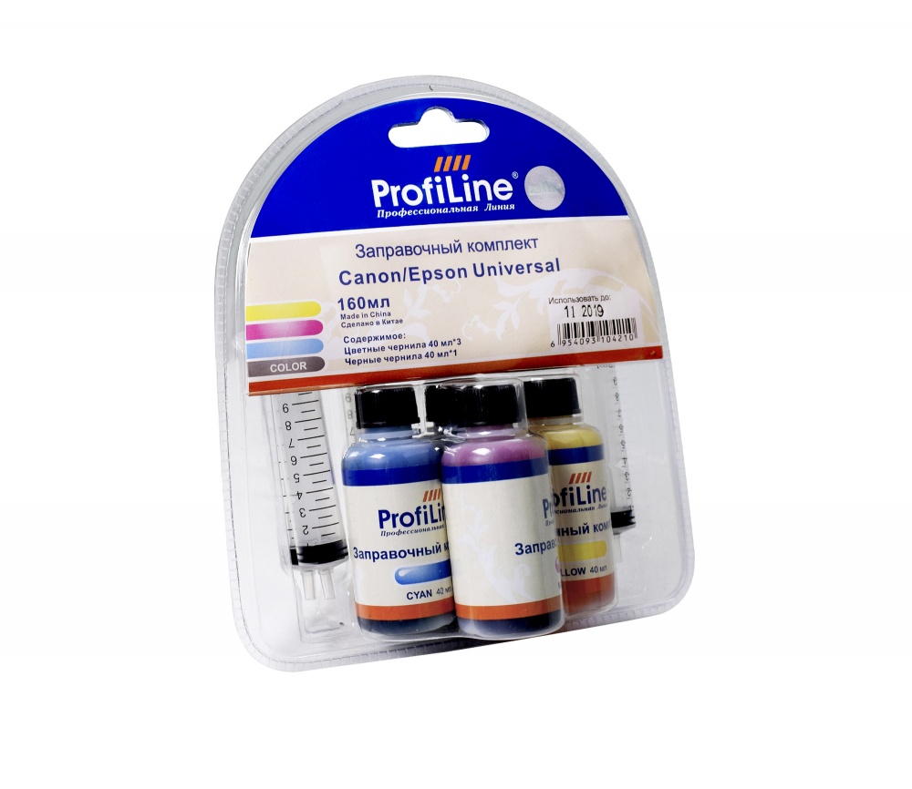 Комплект универсальных чернил для принтеров Canon/Epson на водной основе Black/Cyan/Magenta/Yellow 4*40 мл ProfiLine