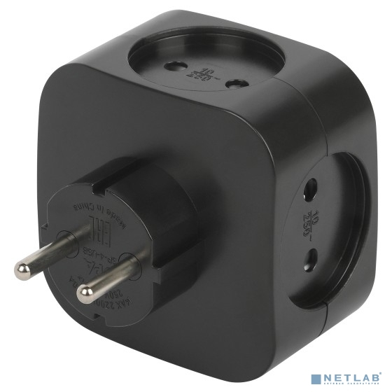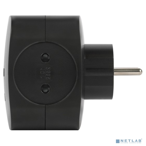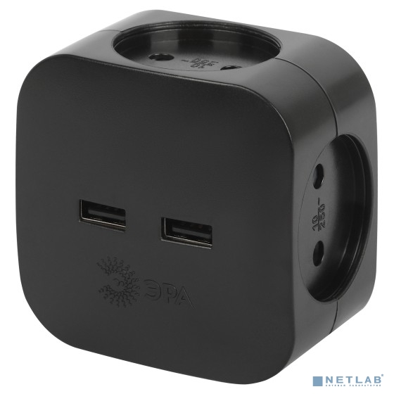 ЭРА Б0049536 Разветвитель электрический SP-4-USB-B на 4 розетки 220V + 2xUSB 2400mA, без заземл 10А (черный)