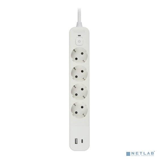 Эра Б0059571 Сетевой фильтр USF-4es-1,5m-2xUSBAC-W с базовой защитой с заземлением с выключателем 4 розетки+ 2xUSBA+C3,1A 1,5м 10А белый