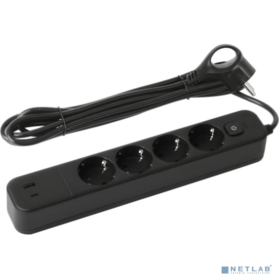 Эра Б0059574 Сетевой фильтр USF-4es-3m-2xUSBAC-B с базовой защитой с заземлением с выключателем 4 розетки+ 2xUSBA+C 3,1A 3м 10А черный