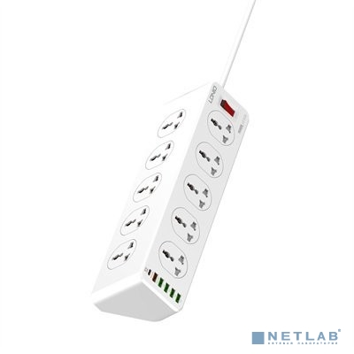 LDNIO SC10610/ Сетевой удлинитель 2м/ 10 розеток EU_UK_US/ 2500W/ 6 USB: QC 3.0+PD 3.0 30W/ White