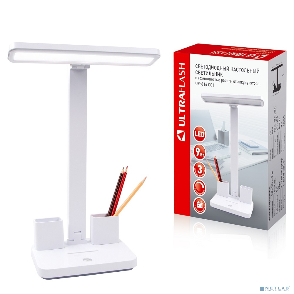Ultraflash UF-814 C01 белый (Led, светильник настольный, 9Вт, аккум., димм., смена цвет.темп.)