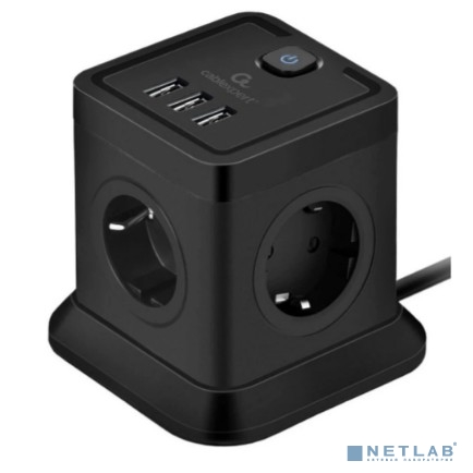Cablexpert Сетевой фильтр Tower TWR-4-U3-B-2 (4р, 10А, 3xUSB, 3.1А, 2м, ур.защиты 2+) черный, коробка