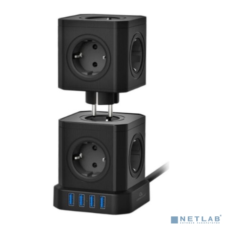 Cablexpert Сетевой фильтр Tower TWR-9-U4-B-2 (9р, 16А, 4 х USB, 3.1А, 2м, ур.защиты 4+) черный, коробка