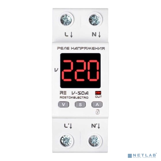 ROSTOKELECTRO 46-244 Реле напряжения однофазное RE V-50A на DIN-рейку, 50-400В, 50А (max 60A) 11000 ВА, 5-600 сек