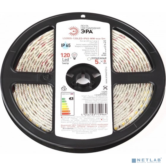 ЭРА Б0035600 Светодиодная лента LS2835 -9,6-120LED-IP65-WW-eco-5m