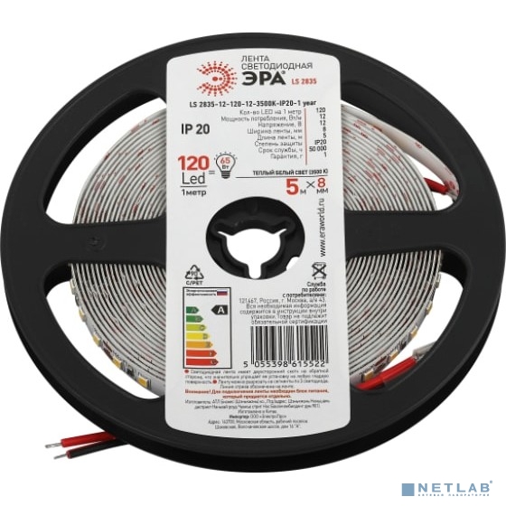ЭРА Б0053971 Светодиодная лента LS2835 12-120-12-3500K-IP20-1 year-5m нейтральный белый свет 5 м
