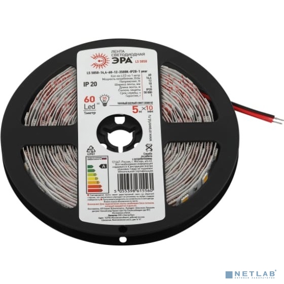 ЭРА Б0053973 Светодиодная лента LS5050 -14,4-60-12-4000K-IP20-1 year-5m нейтральный белый свет