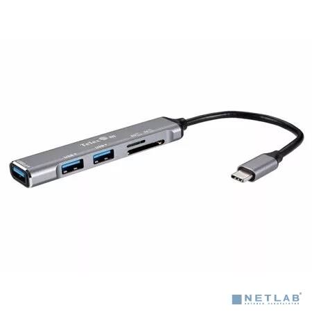 Telecom TA309C Переходник TypeC-->USB3.0+2 USB2.0+SD(2.0)+TF(2.0), Aluminum Shell, 0.15м