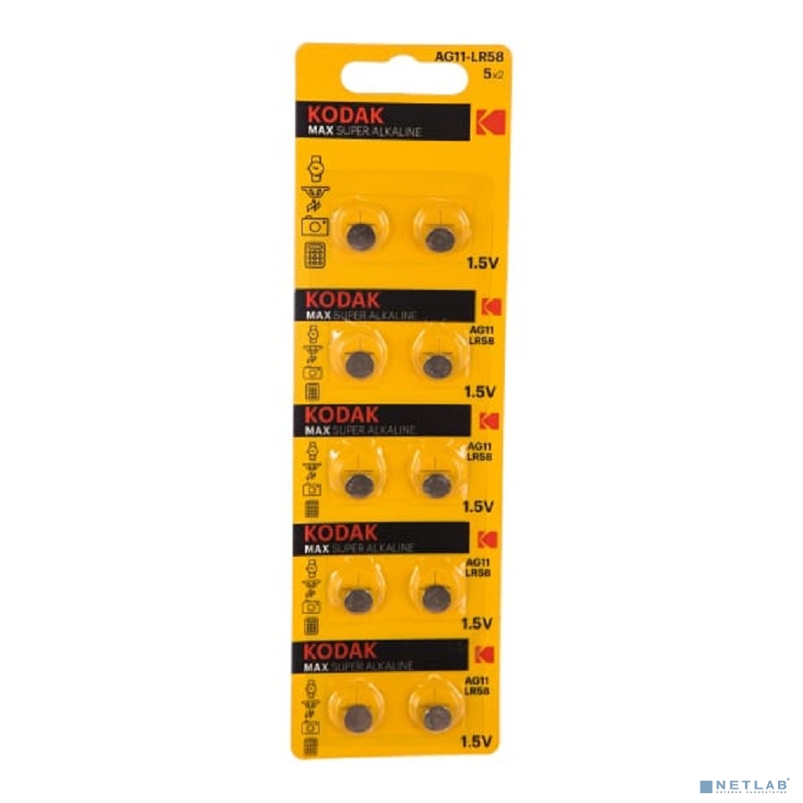 Kodak AG11 (361) LR721, LR58 [KAG11-10] Max Button Cell (100/1000/98000) (10 шт. в уп-ке)