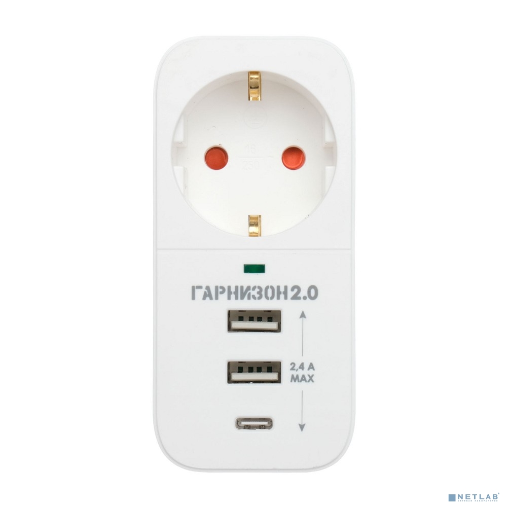 Гарнизон Сетевой фильтр SKT-1-CU2-W 2.0 Мультипорт однорозеточный, 1р, 16А, 1xType-C, 2 х USB, ур.защиты 2+, белый (21440)