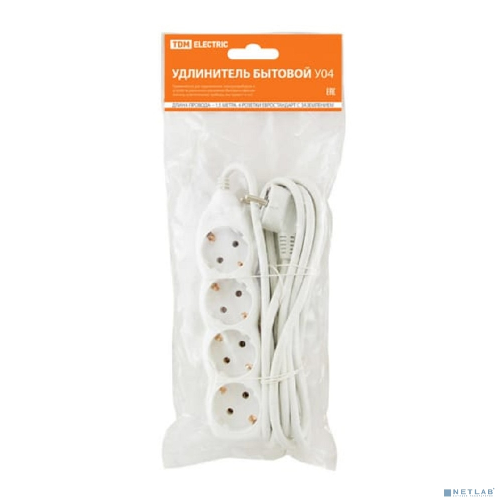 TDM SQ1303-0010 Удлинитель бытовой У04 4 гнезда, 1,5метра, с заземлением, ПВС 3х1мм2 16А/250В