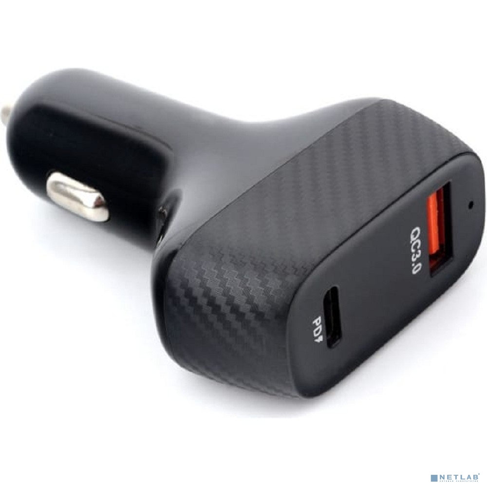 Cablexpert Автомобильное зарядное устройство 36Вт, 3А, QC3.0/PD, 1xUSB, 1xType-C, черный, коробка ()MP3A-UC-CAR20)