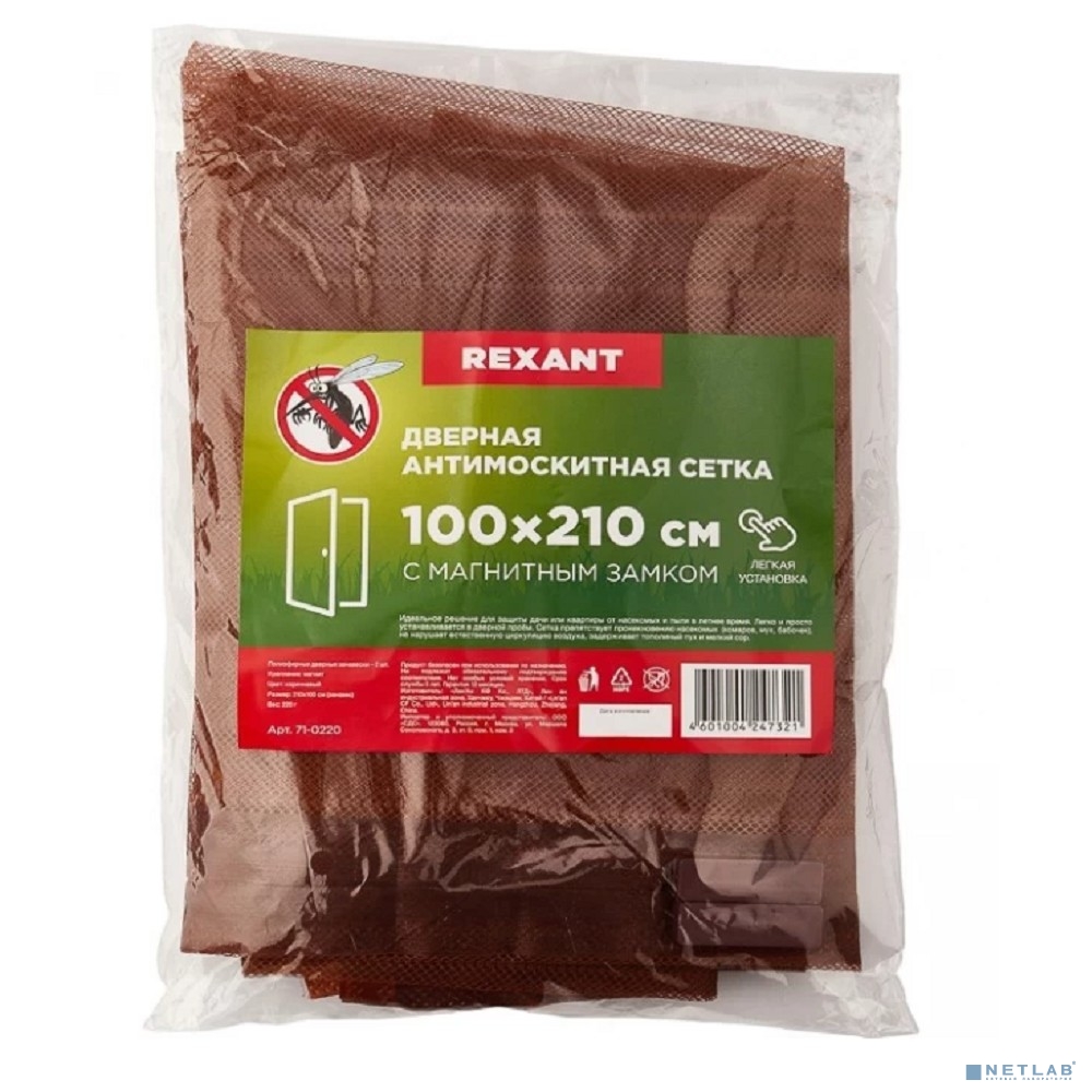 Rexant 71-0220 Дверная антимоскитная сетка 210х100см, с магнитами по всей длине, коричневая