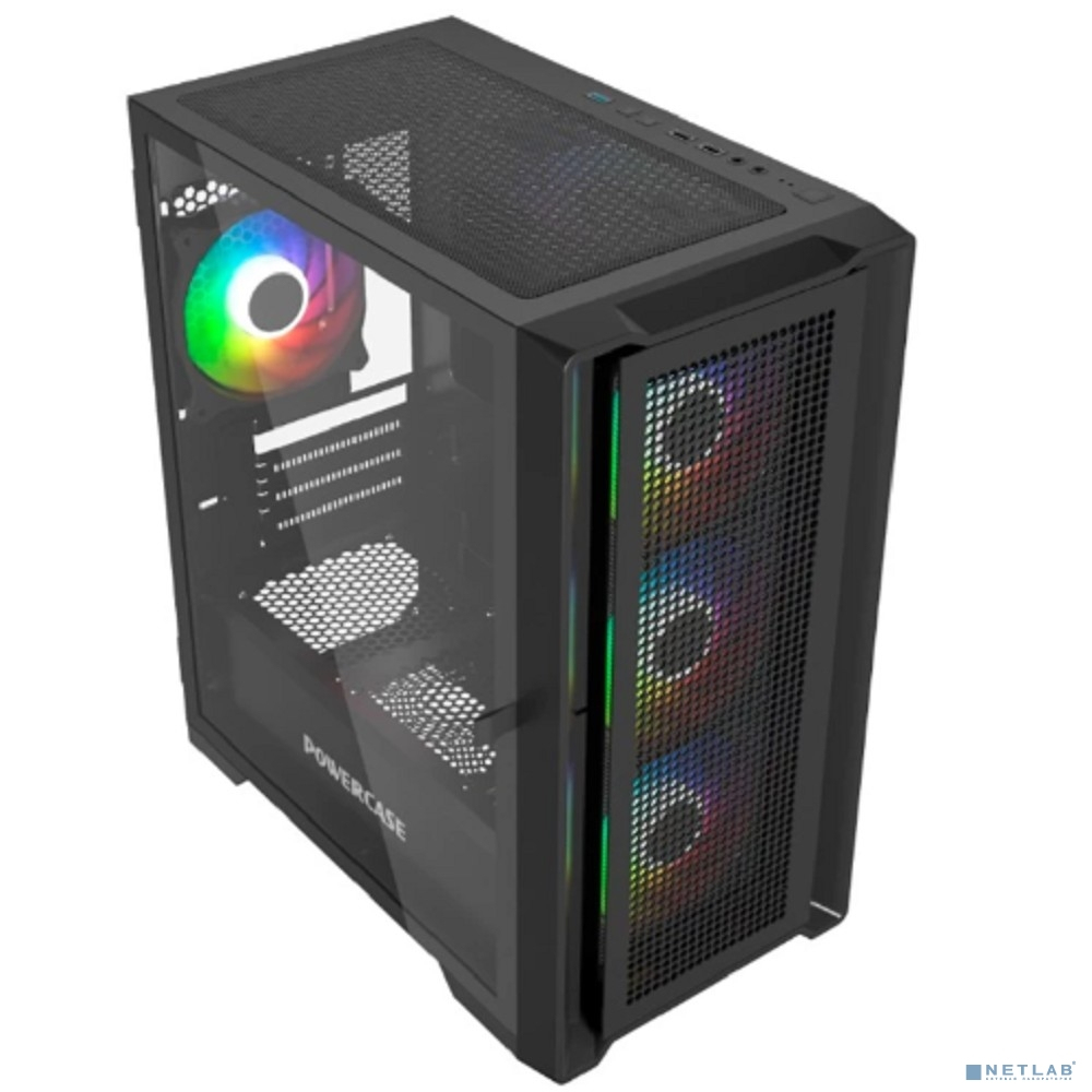 Powercase Alisio Micro X4B V2, Tempered Glass, 4х 120mm ARGB fans, ARGB HUB, чёрный, mATX (CAMCXB-A4)