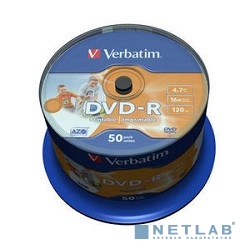 Verbatim Диски DVD-R 4.7Gb 16х, Wide Photo InkJet Printable, 50шт, Cake Box (43533/43649)