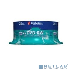 Verbatim Диски DVD-RW 4.7Gb 4-х, 25 шт, Cake Box (43639)