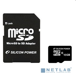 Micro SecureDigital 16Gb Silicon Power SP016GBSTH010V10SP {MicroSDHC Class 10, SD adapter}