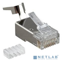 Hyperline PLUG-8P8C-UV-C6-TW-SH Разъем RJ-45(8P8C) , экранированный, со вставкой, категория 6(50 µ"/ 50 микродюймов), универсал.(для однож. и многожил/ кабеля),для толстых жил1.35-1.5 мм