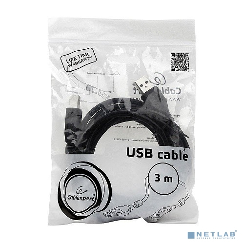 Gembird/Cablexpert CCF2-USB2-AMBM-10 USB 2.0 Pro Кабель , AM/BM, 3м, экран, 2феррит.кольца, черный, пакет